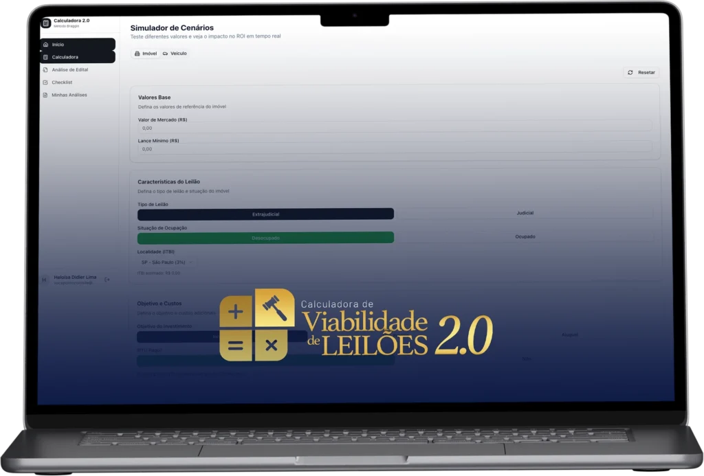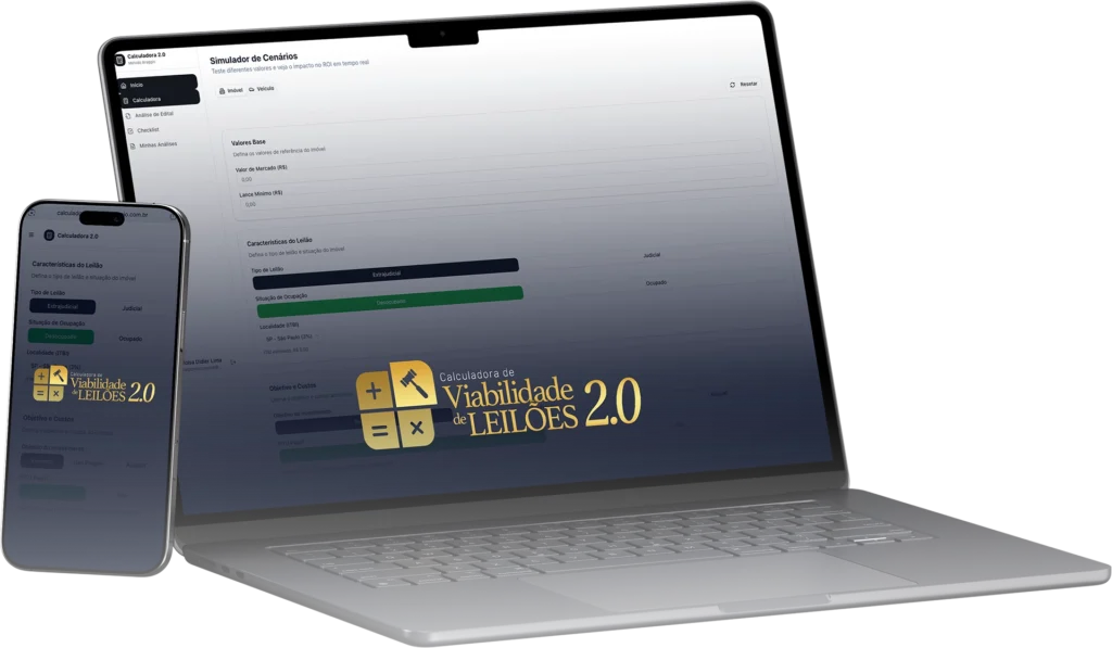 Calcule ROI, custos e viabilidade de imóveis em leilão judicial ou extrajudicial.