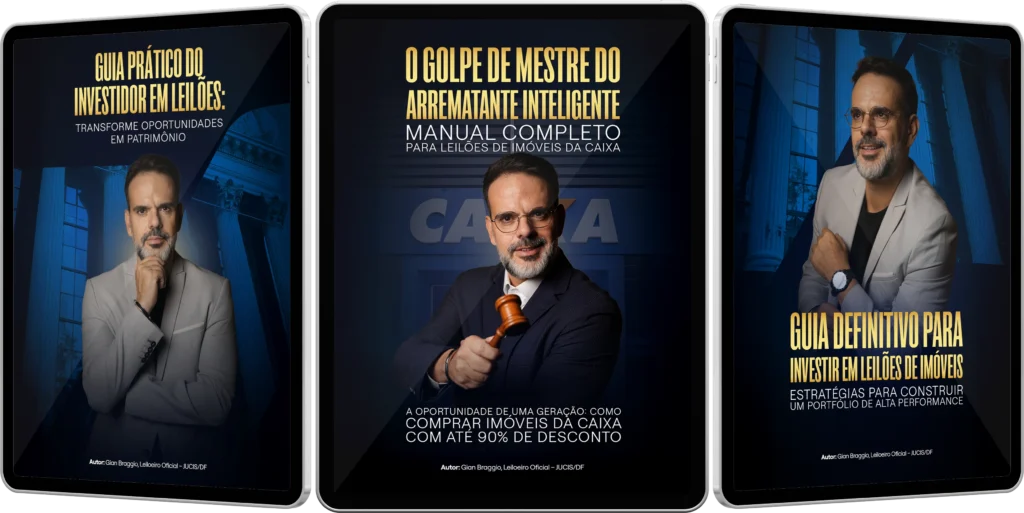 Gian também é criador do Método Braggio: um sistema validado em milhares de arrematações, que ensina qualquer pessoa a investir com segurança em leilões através de 4 pilares: análise estratégica, avaliação técnica, gestão financeira e execução tática de lances.