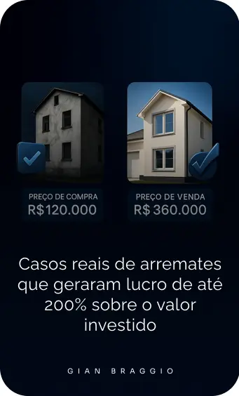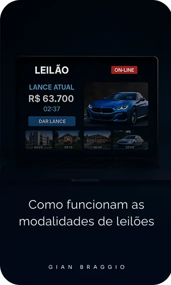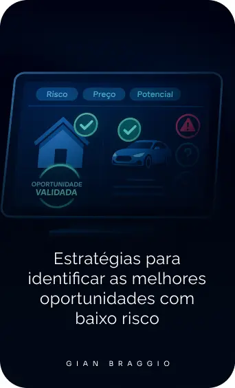Gian também é criador do Método Braggio: um sistema validado em milhares de arrematações, que ensina qualquer pessoa a investir com segurança em leilões através de 4 pilares: análise estratégica, avaliação técnica, gestão financeira e execução tática de lances.